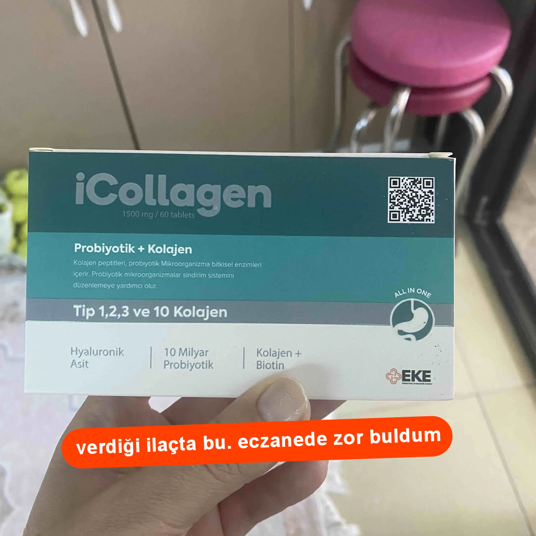 Doktor Handan Hanım, bana eczanelerde bulunan bu ürünü önerdi, ürün hem probiyotik hem de 5 tip kolajen etkisine sahip